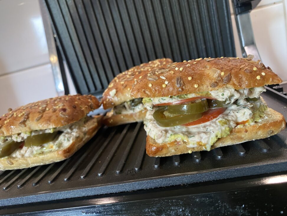 5. LÀgg ihop mackan och grilla i en sandwichmaskin nÄgra minuter tills ytan Àr krispig.